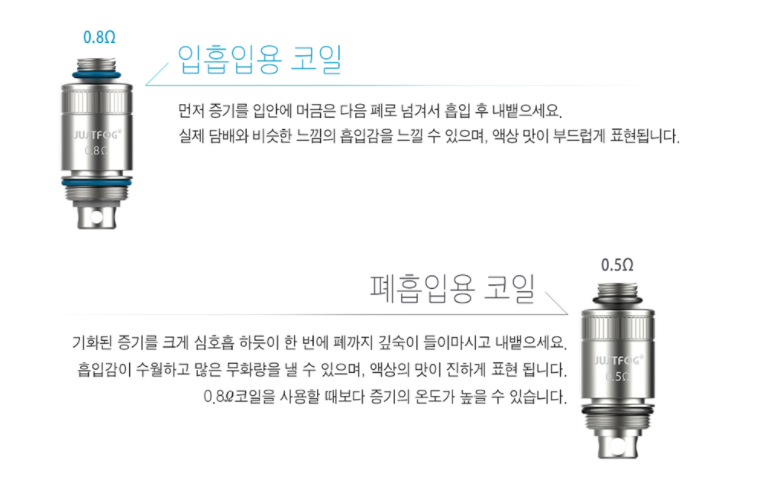 0.8옴 입흡입용 코일 장착시